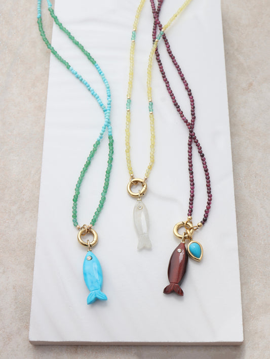 Palma Yellow Agate and Turqupose with Moonstone Fish Necklace
