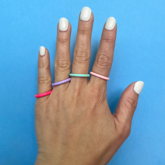 Neon Pink Jelly 14K Gold Plated Sterling Silver Enamel Stacking Ring