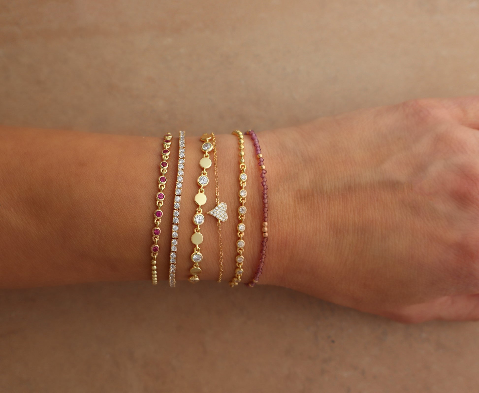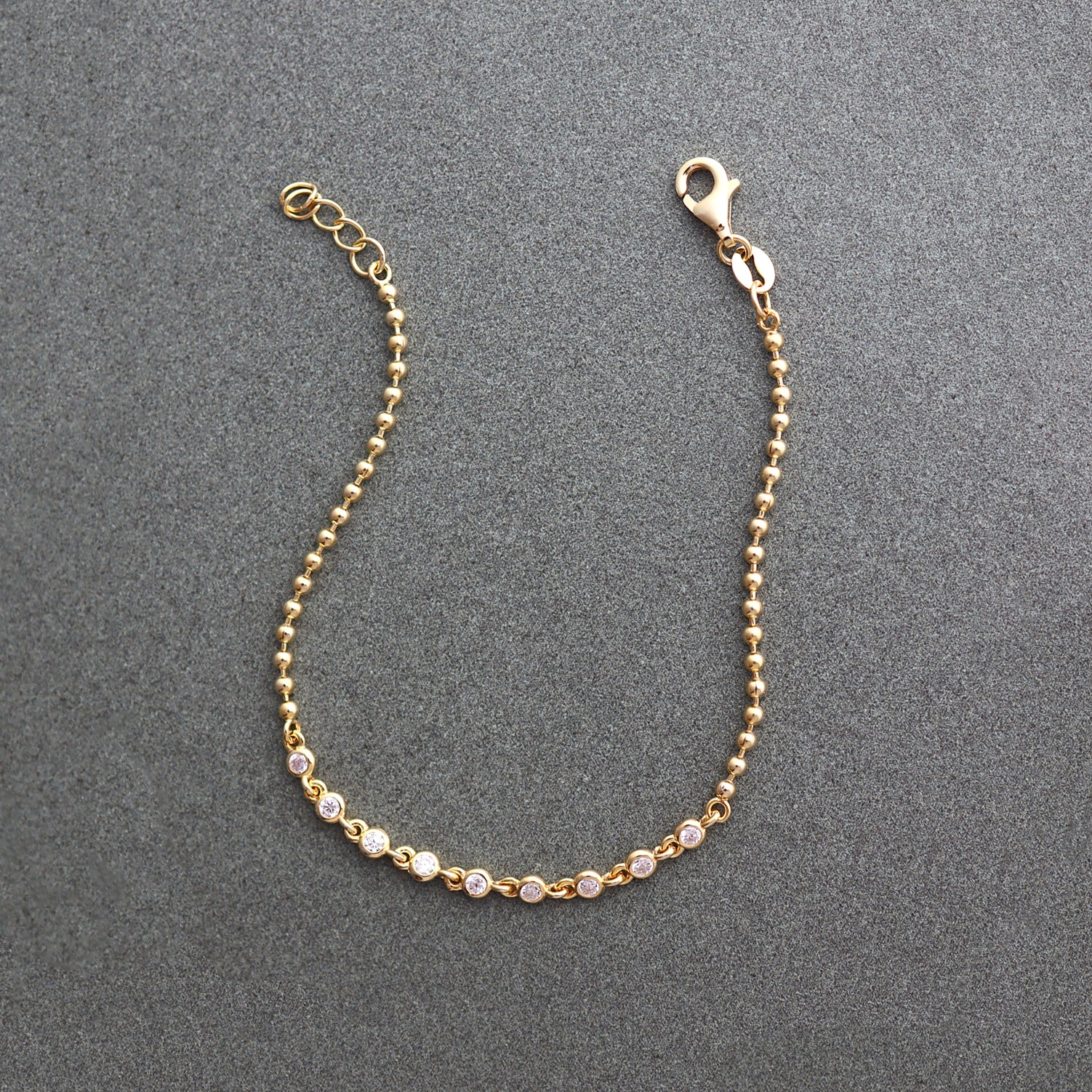 The Confetti Bracelet adds a subtle sparkle to your everyday layers. Designed with small cubic zirconia stations set along a delicate beaded chain, it catches the light with just the right amount of shimmer.