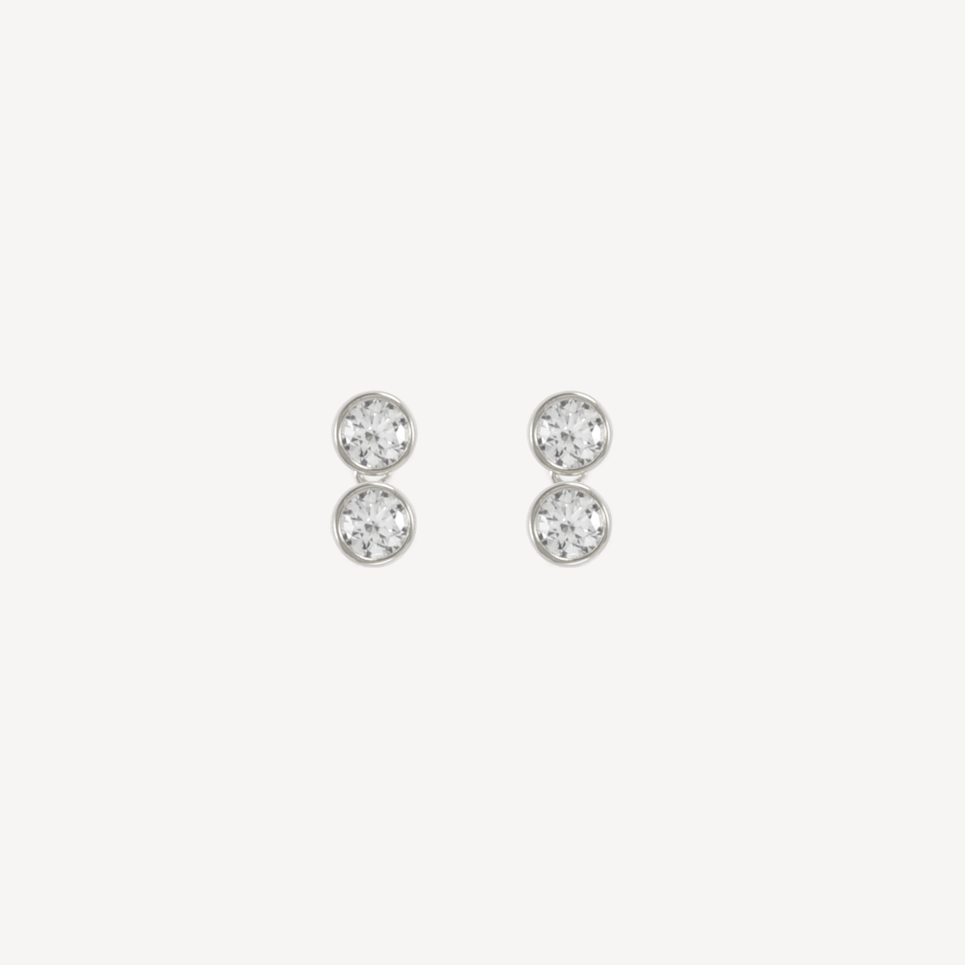 Designed to complement our Doe Huggies, these CZ drop studs bring a touch of movement and light to your everyday stack. Each earring features two brilliant CZ stones set in sterling silver, creating a refined silhouette that catches the light with every turn. Minimal yet striking, they’re the perfect balance of delicate sparkle and effortless polish.