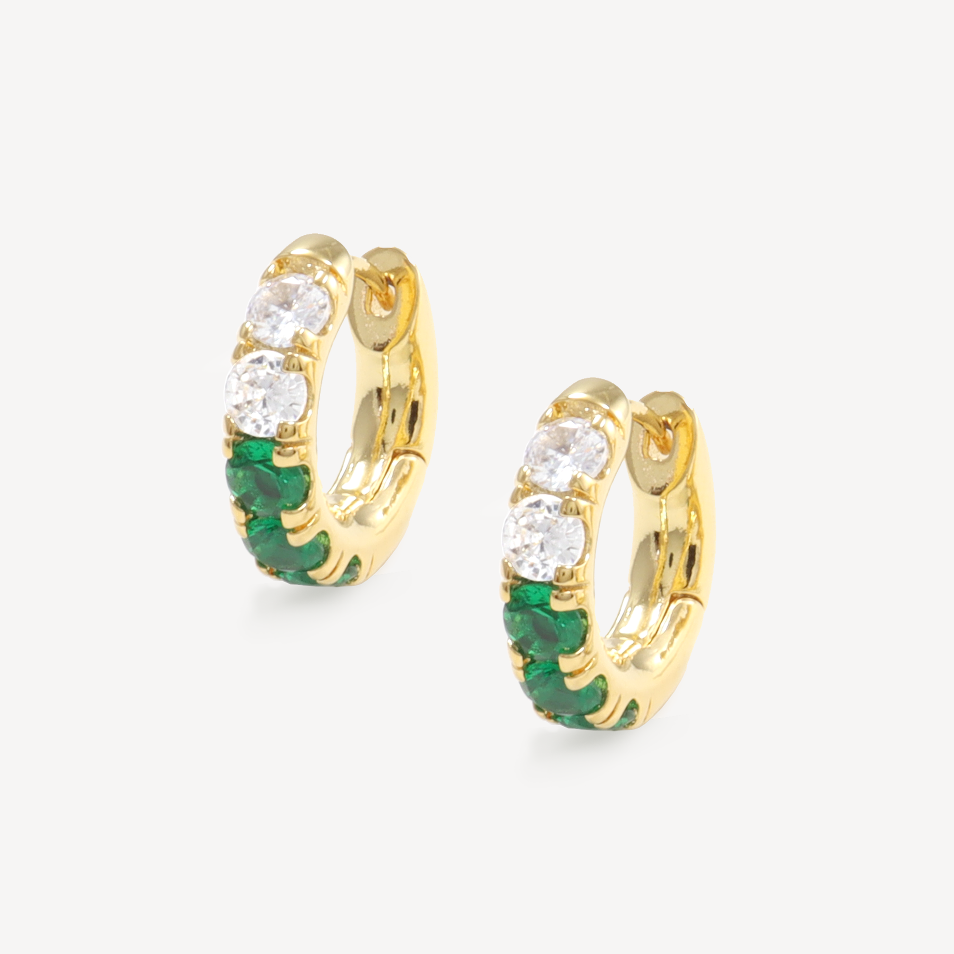 Veronica's little sister brings a pop of color to the perfect bold pave hoop.
