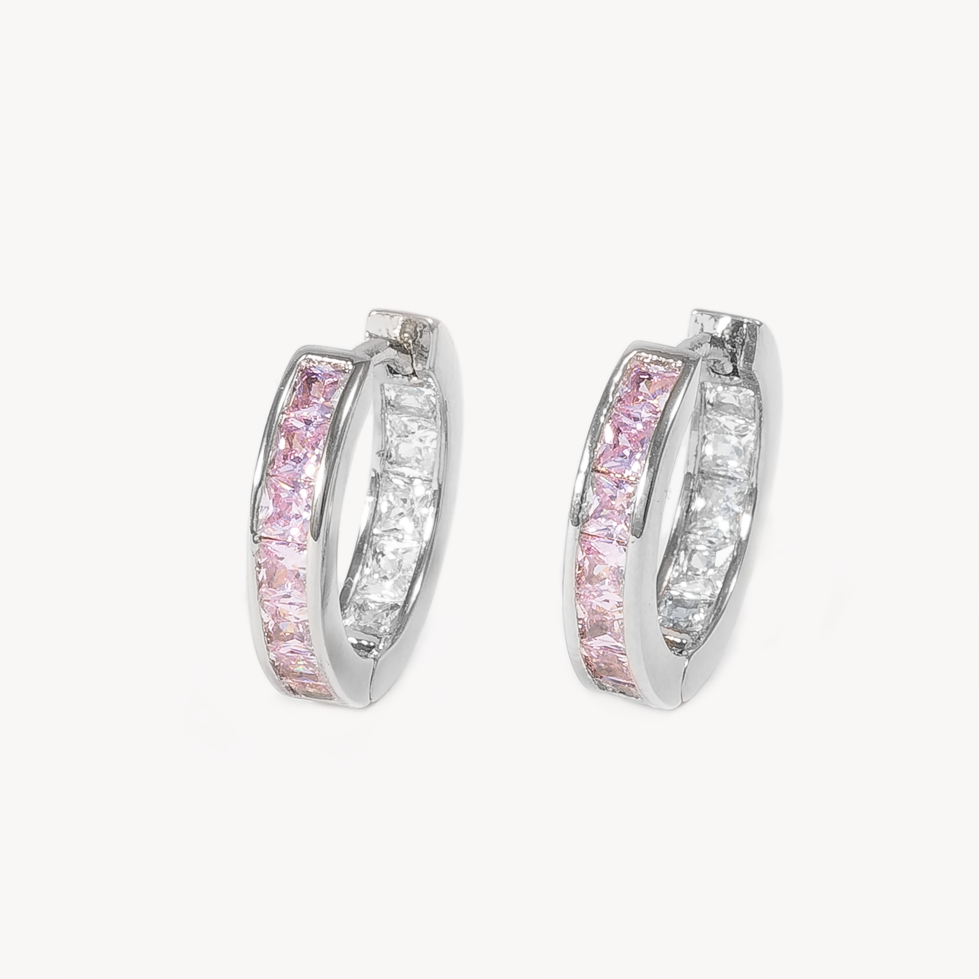 Silver Cher With Pink Crystal Huggies